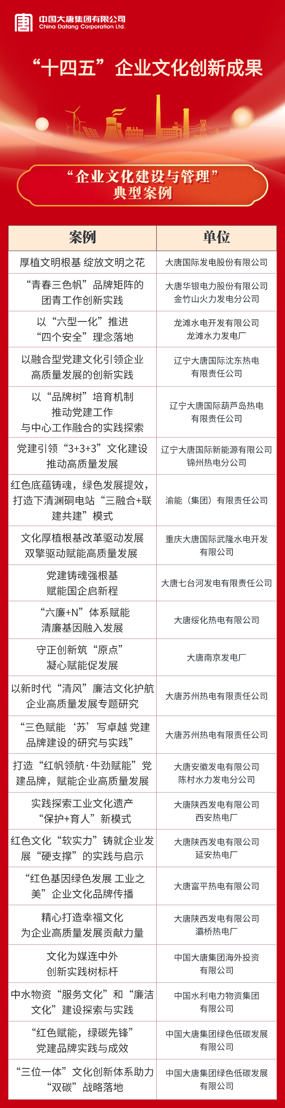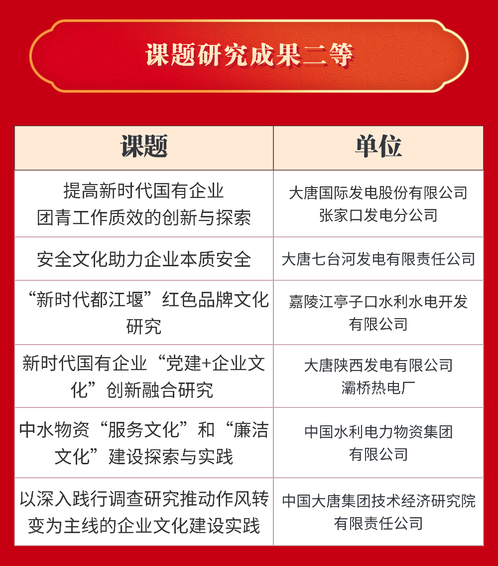 大唐国际发电股份有限公司等22家单位获评“十四五”伟德国际1946官网建设与管理典型案例;伟德国际1946及所属8家单位获评“十四五”伟德国际1946官网建设与管理典型经验;伟德国际1946及所属5家单位获评课题研究成果一等;大唐国际发电股份有限公司张家口发电分公司等6家单位获评课题研究成果二等。具体名单如下: