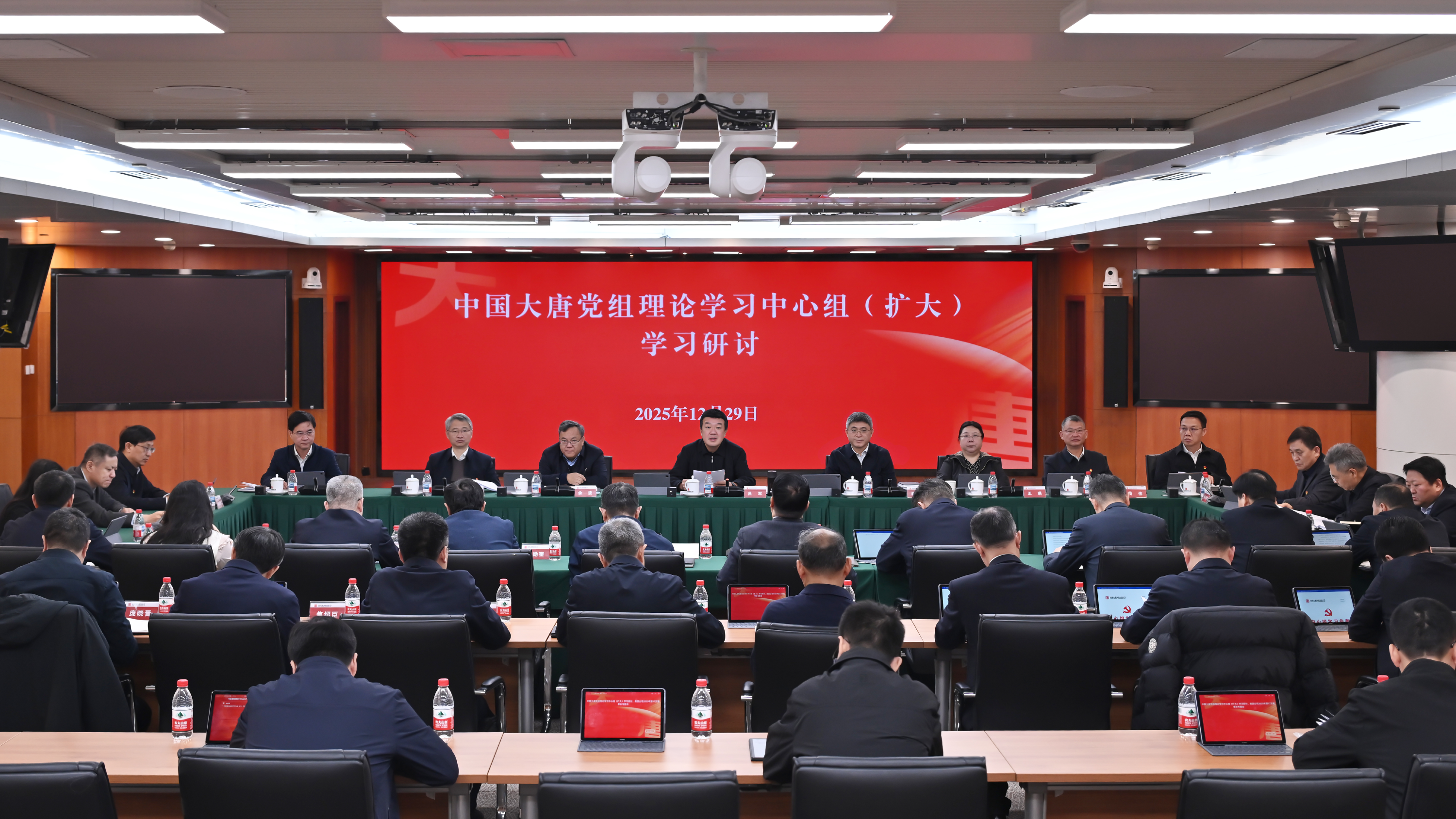 12月29日,伟德国际1946举行党组理论学习中心组(扩大)学习研讨,紧紧围绕习近平总书记对中央企业工作作出的重要指示精神,紧密结合学习贯彻党的二十届四中全会精神和中央经济工作会议精神,牢牢把握“十五五”窗口期,聚焦国家能源政策机遇,用好“两个途径”,发挥“三个作用”,为基本实现社会主义现代化贡献大唐力量。